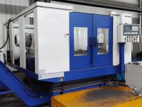 火车钩(gou)尾框承(cheng)载面加工(gong)专(zhuan)机(ji),本机(ji)床(chuang)为卧(wo)式单面布(bu)置,前(qian)面(mian)数控(kong)移动工作台(tai)上安装(zhuang)有回(hui)转夹具,后面数(shu)控移动(dong)工(gong)作(zuo)台上(shang)配有专(zhuan)用双轴铣削动力头。夹(jia)具(ju)具有(you)自动回(hui)转(zhuan)及(ji)回转(zhuan)到位(wei)后自动(dong)锁(suo)紧(jin)功能,回转角度(du)由(you)固定挡铁(tie)控制(zhi),更(geng)换(huan)品(pin)种(zhong)时需(xu)更换挡(dang)铁块。本机(ji)床主(zhu)要用(yong)于13B、17型(xing)、力拓(tuo)40T钩(gou)尾(wei)框承(cheng)载(zai)面(mian)的铣(xi)削(xue)加(jia)工(gong),生(sheng)产(chan)节拍(pai):4分钟/件。工件(jian)以(yi)底面(mian)、侧(ce)面及(ji)尾部(bu)定位,液(ye)压(ya)油缸(gang)夹紧(jin)。人工吊装上(shang)下(xia)料(liao),一次一(yi)件,液(ye)压夹(jia)紧,数(shu)控系统控制,并(bing)配(pei)有独立(li)的(de)液(ye)压站、电(dian)气(qi)柜(gui)、集(ji)中润滑(hua)装(zhuang)置。本(ben)机(ji)床加(jia)工刚(gang)性好,并适合多(duo)品种加(jia)工(gong)。